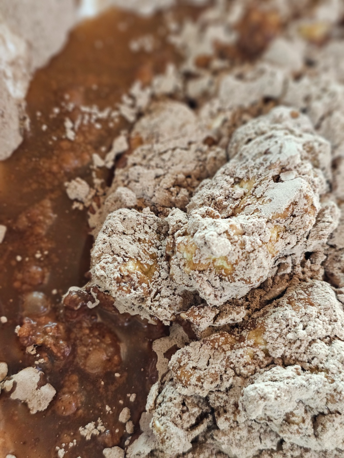 바닥에서 위로 퍼올리듯이 섞어줍니다